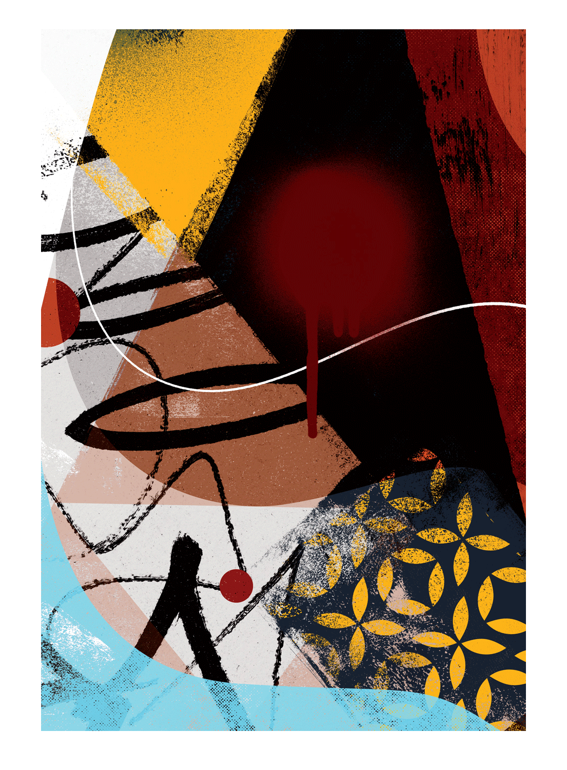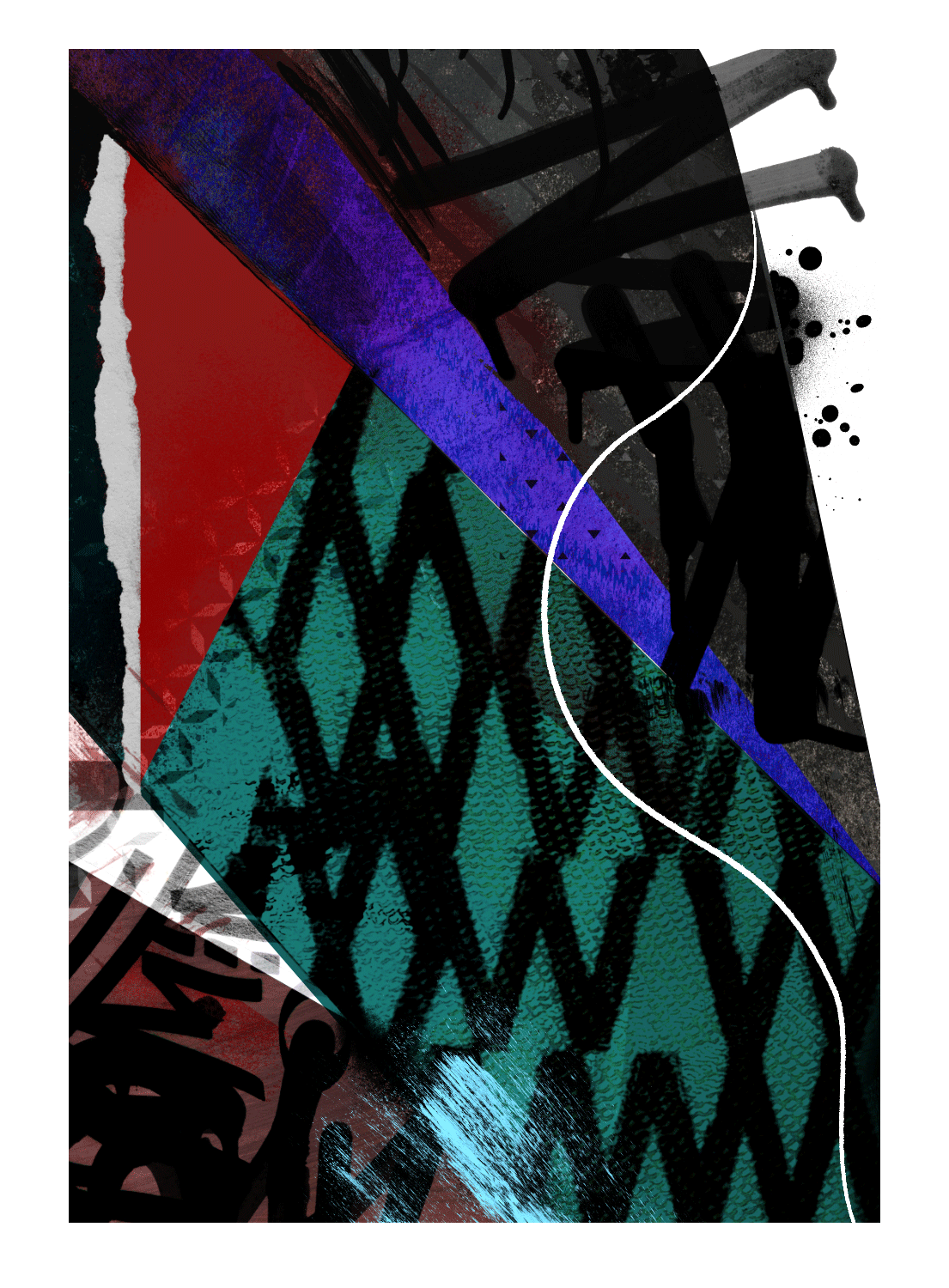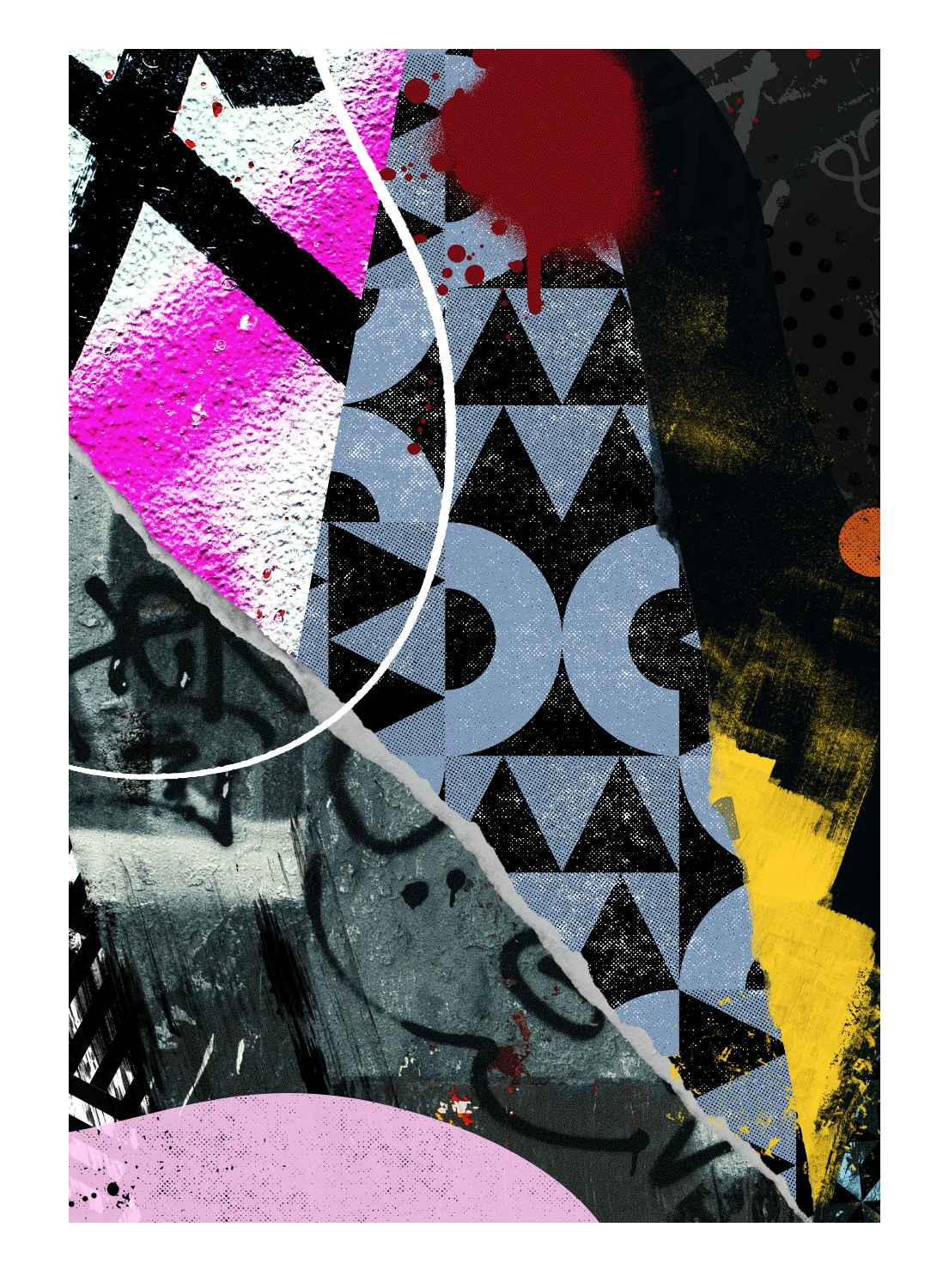 HAND PAINTED TEXTURES, ILLUSTRATED PATTERNING, DISTRESSED GRAFFITI BLEND WITH RICH COLOURS TO FORM THESE INTRICATE PORTRAITS. THE SCALE OF THE WORK ADDS TO THE OVERALL IMPACT OF THESE UNIQUE PIECES.